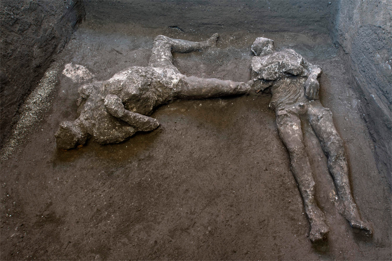 İtalya'nın Napoli kenti yakınlarındaki Vezüv Yanardağı'nın MS 79'da patlamasıyla lavlar altında kalan Pompei Antik Kenti'nde yapılan kazılarda herhangi bir hasara uğramamış küllerle kaplı 2 insan bedeni bulundu.