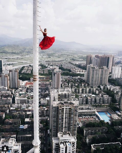 Rus blogger Angela Nikolau, sosyal medya hesabından tehlikeye meydan okuyor. Moskova, Dubai, Hong Kong gibi gökdelenlerin yoğun olduğu kentlerde bu binaların en tepesine çıkıp fotoğraflar çeken Angela Nikolau'nun instagram hesabı büyük ilgi görüyor.