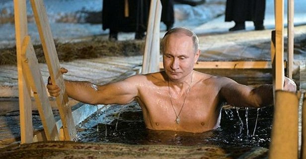 Rus Ortodoks Kilisesi'nin kutladığı ve Epifani Bayramı olarak bilinen etkinliğine Rusya Devlet Başkanı Vladimir Putin'inle birlikte binlerce kişi katıldı. Rusya Başkanlık Ofisi Kremlin Sarayı basın servisinin paylaştığı bilgilere göre Putin, eksi 9 derecelik havada, üzeri buz tutmuş gölde suya girdi.