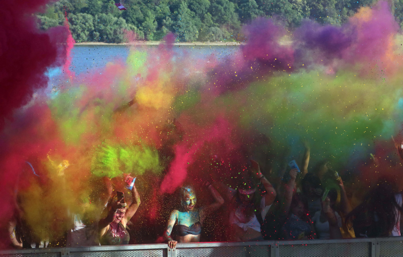 Novi Sad Avrupa Gençlik Başkenti (OPENS) tarafından bu yıl ikincisi düzenlenen festivale katılan yüzlerce kişi renkli boya toplarını birbirine atarak Tuna Nehri kıyısında görsel şölen oluşturdu.