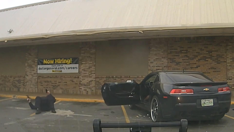 Görüntülerde yaralanan polis Baker'ın yere yığıldığı görülüyor.