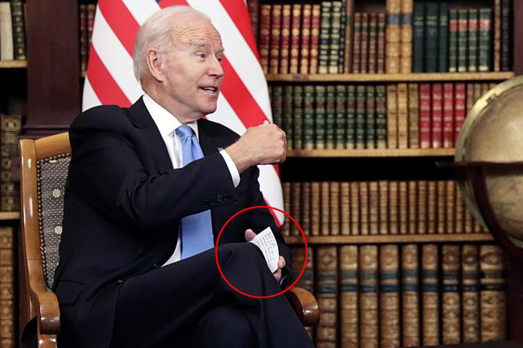 Biden'ın Putin ile görüşmesi sırasınca avucunun içine gizlediği notlara attığı kaçamak bakışlar foto muhabirlerin dikkatinden kaçmadı.