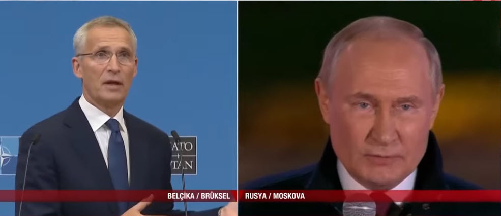 Stoltenberg'in Rusya'yla ilgili açıklama yaptığı anlarda Putin de ilhak kutlamalarında konuşuyordu.