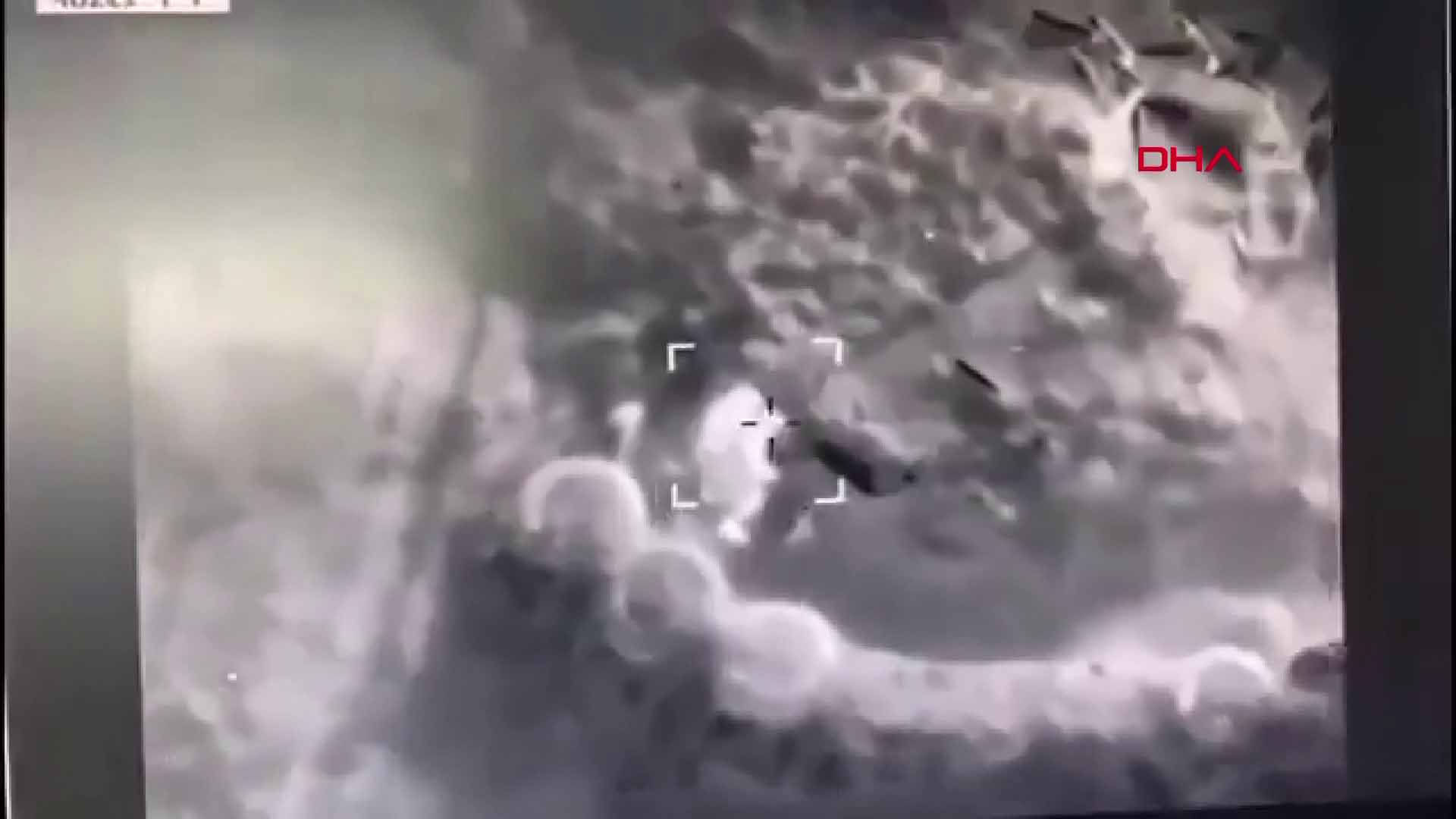 Görüntülerde askerlerin üzerinde keşif yapan drone'un, bir süre sonra aniden dalışa geçerek askerlerin bulunduğu mevziye kamikaze saldırısı düzenlediği görülüyor.