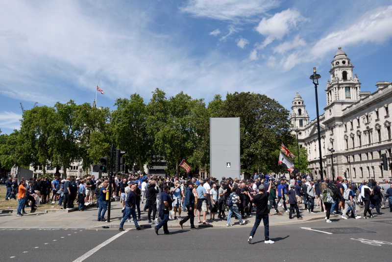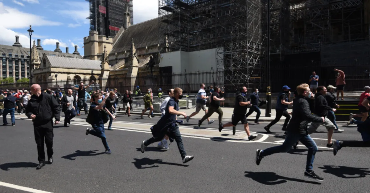 İngiliz Savunma Ligi ve Önce İngiltere gibi çeşitli gruplardan oluşan binden fazla aşırı sağcı, sabahtan itibaren Parlamento Meydanı'nda ve Başbakanlığa çıkan yol üzerine kurulan polis barikatının girişinde toplanmaya başladı.
