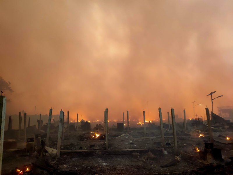Türk Kızılay'dan yapılan açıklamaya göre, Bangladeş'te Arakanlı Müslümanların yaşadığı kampta çıkan ve rüzgarın etkisiyle hızla yayılan yangında, 10 binden fazla barınak kül oldu.