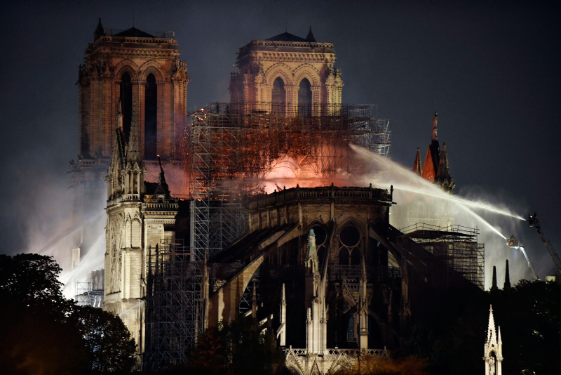 Yerel saatle 18.50'de başlayan yangın 03.20'de söndürüldü. Yangında 93 metre yüksekliğindeki kulelerden biri ve yapının çatısı tamamen çöktü. Yaklaşık 500 itfaiyecinin müdahale ettiği yangında, yoğun çalışma sayesinde kuzey çan kulesi ile ana bina kurtarıldı.