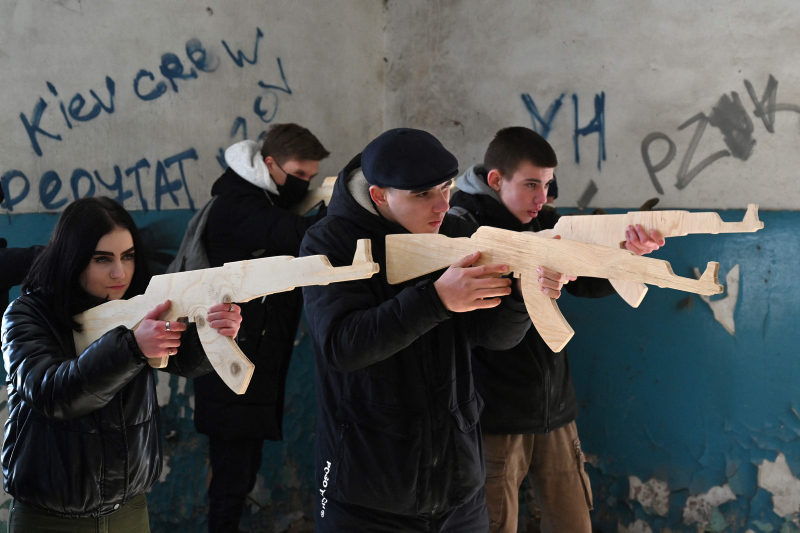 Başta ABD olmak üzere ordusunu diğer ülkelerden gelen silahlar ile donatan Ukrayna halka askeri eğitim vermeye devam ediyor.