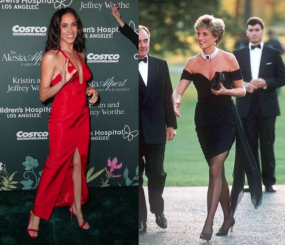 Sussex Düşesi Meghan Markle, Los Angeles'ta düzenlenen bir galada boy gösterdi. Markle'ın yırtmaçlı kırmızı elbisesi Prenses Diana'nın intikam elbisesine benzetilirken ayrılık ilanı olarak yorumlandı.