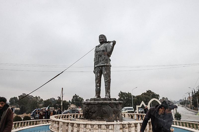 Kutlamalar sırasında terör örgütü YPG/SDG'ye ait heykellerin halk tarafından yıkıldığı görüldü.