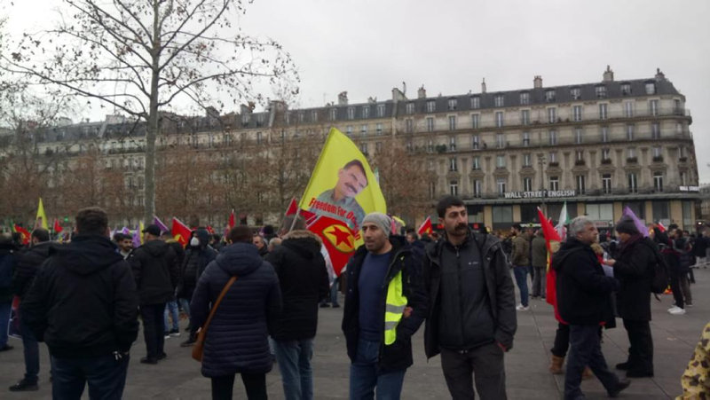 Binlerce terör örgütü PKK taraftarı TSİ 14.00 sularında Paris'te Cumhuriyet Meydanı'nda toplandı. Meydanın yakınındaki Tremple Bulvarı'nda terör örgütü PKK yanlısı sloganlar atan saldırganlar, elebaşı Abdullah Öcalan'ın fotoğrafı ile PKK'yı simgeleyen bez parçaları taşıdı.