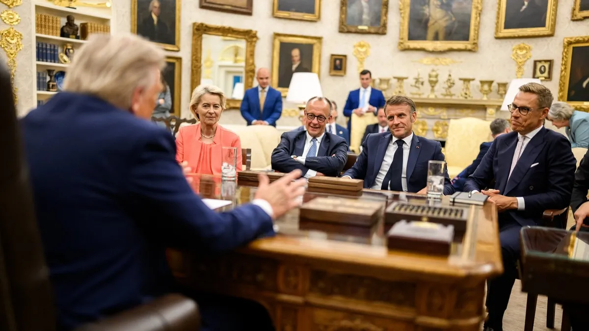 Zelenskiy ile birlikte Avrupa Birliği (AB) Komisyonu Başkanı Ursula von der Leyen, İngiltere Başbakanı Keir Starmer, Almanya Başbakanı Friedrich Merz, Fransa Cumhurbaşkanı Emmanuel Macron, İtalya Başbakanı Giorgia Meloni, Finlandiya Cumhurbaşkanı Alexander Stubb ve NATO Genel Sekreteri Mark Rutte Beyaz Saryay'da Trump ile bir araya geldi.