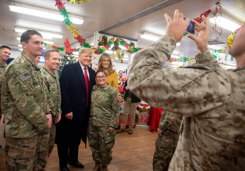 Trump, üsteki ABD askerleriyle görüşmesi sırasında yaptığı açıklamada, "Irak'tan çekilmeye yönelik hiçbir planımız yok. Eğer Suriye'de bir şeyler yapmak istersek Irak'ı üs olarak kullanırız." ifadelerini kullandı.