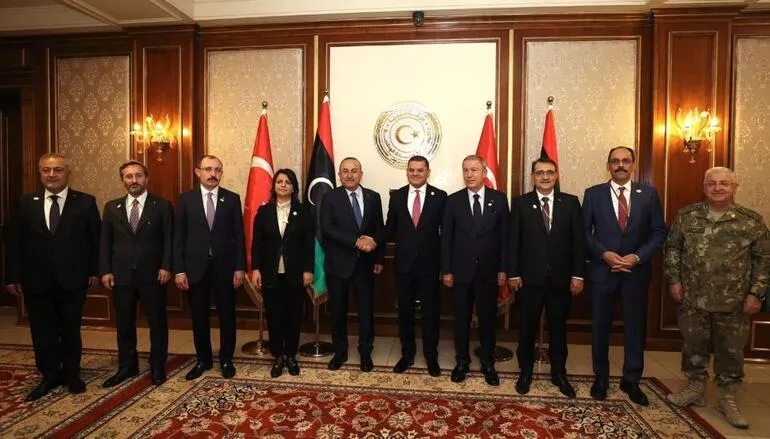 Dışişleri Bakanı Mevlüt Çavuşoğlu, Milli Savunma Bakanı Hulusi Akar, Ticaret Bakanı Mehmet Muş, Enerji ve Tabii Kaynaklar Bakanı Fatih Dönmez, Cumhurbaşkanlığı İletişim Başkanı Fahrettin Altun ve Cumhurbaşkanı Sözcüsü İbrahim Kalın, temaslarda bulunmak üzere dün Libya'daydı. Libya Dışişleri ve Uluslararası İşbirliği Bakanı Necla Manguş ve diğer yetkililer tarafından karşılanan Türk heyet, Libya Başbakanı Abdulhamid Dibeybe ile görüştü.