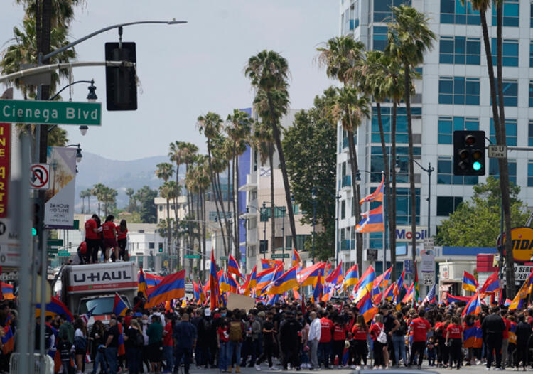 ABD'de yaşayan bir grup Türk vatandaşı konutun önündeki kaldırıma kurdukları çadırdan marşlar ve şarkılar çalarken, meydandaki anıtın çevresinde toplanan Ermeniler de Türkiye karşıtı sloganlar attı.
