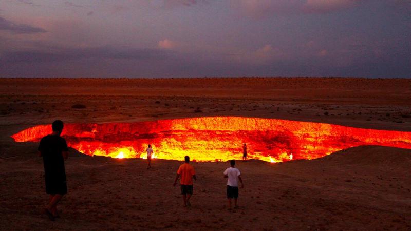 Eski Sovyetler Birliği döneminde jeologların çalışması sırasında yanlışlıkla oluşan kraterin ateşi 1971'den bu yana aktif durumda. Cehennem Kapısı diye de bilinen krater, turistlerin ilgisini çekiyor.