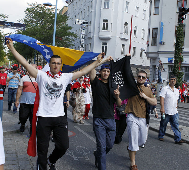 Bu arada mitinge Türklerin yanısıra Avusturya'da yaşayan Arap ülkeleri ile Balkan ülkelerindeki Müslümanlar da kendi ulusal bayraklarıyla katıldı.