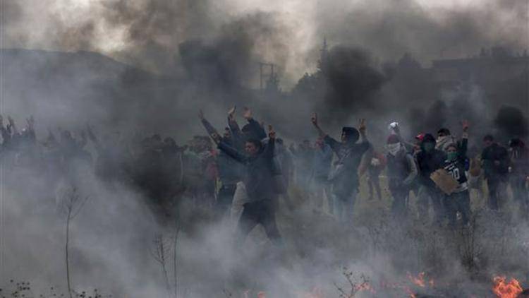 Polis, sınırı geçmek üzere hareket edenlere göz yaşartıcı gaz ve ses bombası ile müdahale ederken, göçmenler polise taş ve sopalarla karşılık verdi.