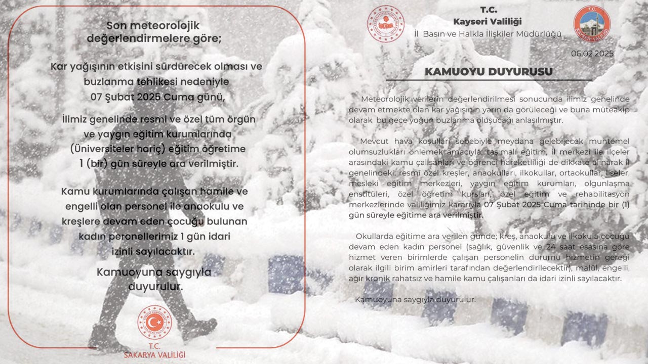 📢 7 ŞUBAT CUMA KAR TATİLİ OLAN İLLER VE İLÇELER