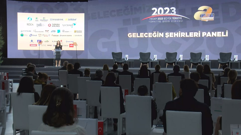 Çevre ve Şehircilik Bakanı Murat Kurum'un açılış konuşmasının ardından başlayan Geleceği Şehirleri Paneli'nde Çevre ve Şehircilik Bakanlığı Bakan Yardımcısı Hasan Suver, Limak Holding Yönetim Kurulu Başkanı Ebru Özdemir, Çevre ve Şehircilik Bakanlığı Mekansal Planlama Genel Müdürü Erdal Kayapınar, GYODER Başkanı Mehmet Kalyoncu ve DAP Holding Yönetim Kurulu Başkanı Ziya Yılmaz Sabah Gazetesi Ekonomi Müdür Yardımcısı Dilek Güngör'ün sorularını cevapladı.
