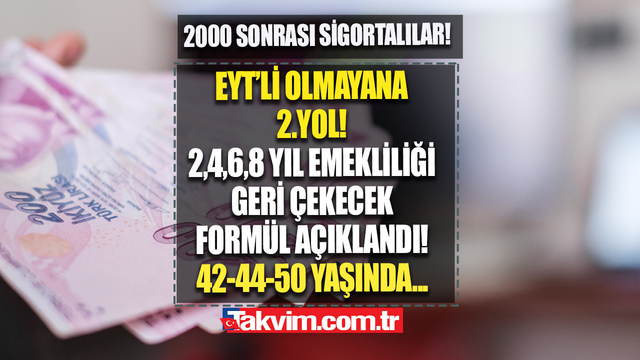 EYT düzenlemesi Meclis'e geldi ve yasa teklifi maddeleri açıklandı. Bu kapsamda EYT'yi kaçıranlar erken emeklilik yollarını aramaya başladı. SSK, Bağ-Kur, Emekli Sandığı ayrımı yapmaksızın 8 Eylül 1999 ve öncesinde çalışmaya başlayan ve yürürlükteki mevzuata göre prim ve yıl koşullarını yerine getiren herkes emekli olabilecek. Öte yandan 2000 ve sonrası sigortalılar için erken emeklilik yolları bulunuyor. İşte tüm detaylar...