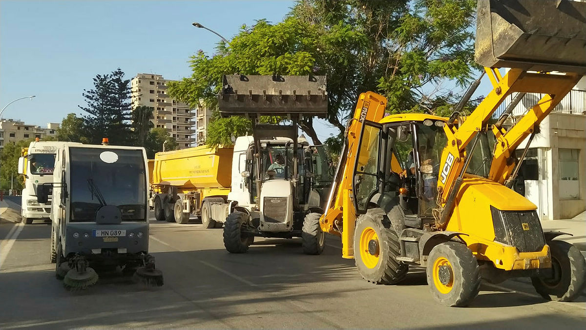 Bölgede temizlik çalışmalarına başlayan ekipleri ve iş makinelerini DHA görüntüledi. İş makineleriyle 1974'ten sonra atıl durumda kalan caddelerde temizlik yapıldı.