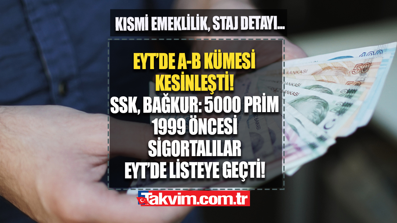 EYT hakkında son gelişmeler hız kazandı. Son dakika açıklamaya göre; Bakan Bilgin düzenlemenin bu hafta Meclis'e gelmesini tahmin ettiğini söylerken, grupta milletvekillerinin görüştüğünü, üzerinde konuşulan kanun teklifinin de komisyonda tartışılacağını kaydetti. Bütçe görüşmesinin arkasından EYT yasası taslağı Meclis Genel Kurulu'nda oylanarak yasalaşacak. EYT düzenlemesi 5 adımda resmileşecek. Öte yandan SSK'lı ve Bağkur'lular için 3600-5400 gün primle emeklilik hesapları merak ediliyor. İşte EYT'nin Meclis'e geleceği tarih ve son açıklamalar...