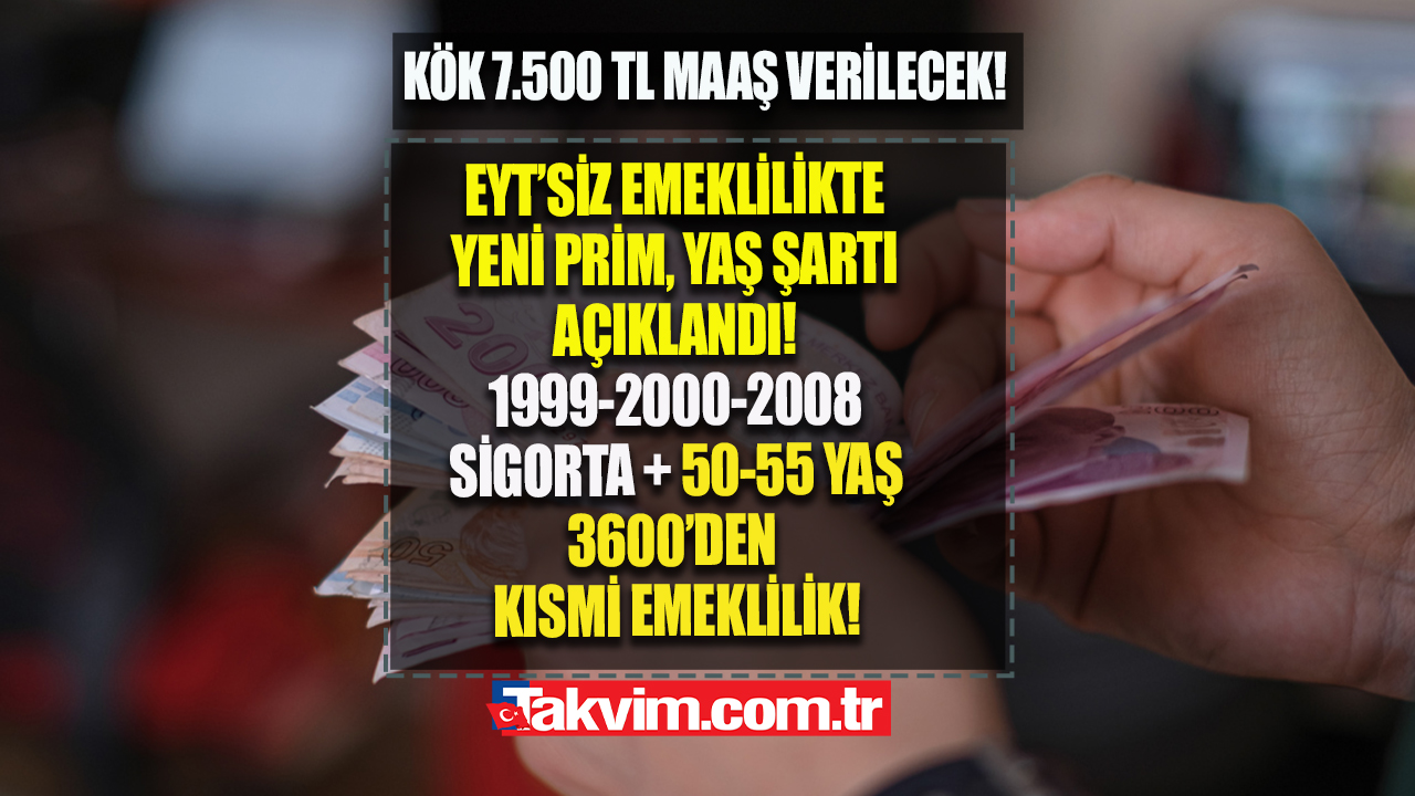 EYT'yi az bir farkla kaçıranlar için kısmi emeklilik formülü gündeme geldi. Kısmi emekli olanlar da 7.500 TL maaş alabilecek. Primi yetmeyenler 3600 gün formülüyle beraber 50-55 yaşında emeklilik hakkına sahip olacak. İlerleyen süreçte emeklilik yaşının kadınlarda çocuk sayısına göre düşürülmesi, esnafın emekliliği için gerekli prim gün sayısının düşürülmesi için yeni adımlar atılmış olacak. İşte EYT'den yararlanamayanlar için yeni formüller ve kısmi emeklilik rehberi haberimizde...