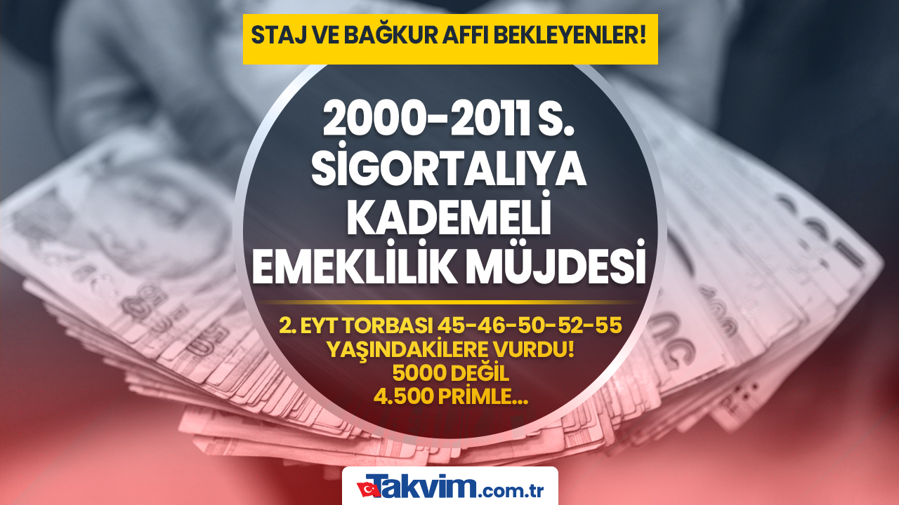 5000 prim değil 4.500 prim yeterli! 2. EYT torbası 45-46-48-50-52-55 yaşındakilere vurdu! Staj Çıraklık, Bağkur affı...
