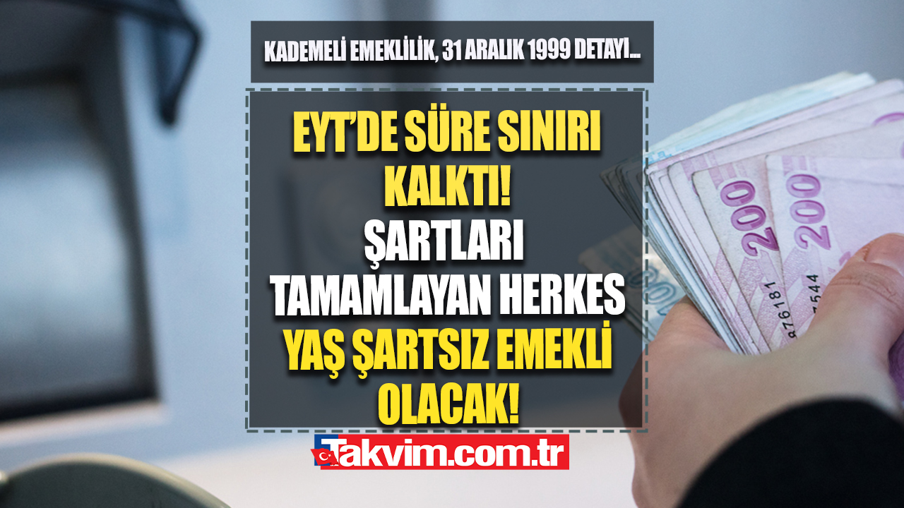 Takvim Gazetesi Ekonomi Müdürü Faruk Erdem EYT hakkında önemli açıklamalarda bulundu. EYT'de süre sınırının kalktığını ifade eden Erdem, her EYT'linin şartları sağladığı an emekli olabileceğini dile getirdi.