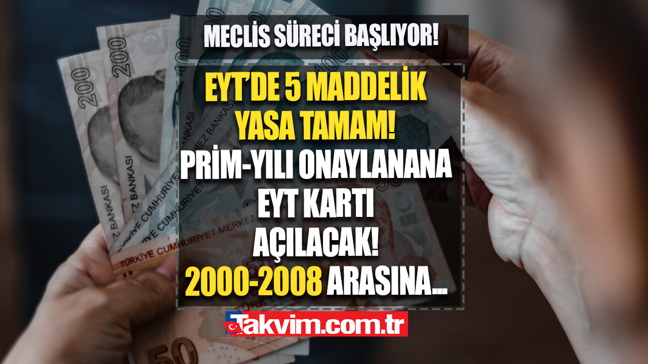EYT düzenlemesi için geri sayım sona eriyor. Yaşa Takılanlar'ın emekli olma yolunu açacak 5 maddelik yasa teklifi tamamlandı. Pazartesi günü Meclis Başkanlığı'na sunulacak. Heyecanla beklenen EYT dosyasının iki maddesi yürütme ve yürürlülük, kalan 3 maddesi de düzenlemeyi oluşturuyor. Bundan sonraki aşamada ise yasalaşma süreci başlayacak. Düzenlemeden ilk aşamada 2 milyon 250 bin kişi faydalanacak. EYT'de yaş sınırı aranmayacak. 8 Eylül 1999'dan önce sigorta girişi olanlar için, Emekli Sandığı, SSK ve Bağ-Kur ayrımı gözetilmeyecek. Peki, EYT emeklilik dilekçesi ne zaman verilecek? EYT'liler ne kadar maaş alacak? İşte tüm detaylar...