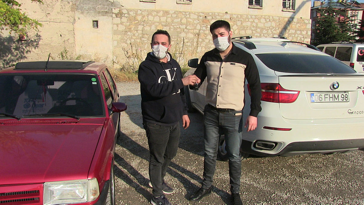 Hurdaya ayrılmak üzere bulduğu bir aracı satın alan Özkan, motor aksamında bakım yaptırdıktan sonra tavanının bir bölümünü aletle kesip, gelişmiş araçlarda bulunan açılır tavan taktı. Aracı start stop ve katlanır ayna gibi özelliklerle donatan Mehmet Özkan, hurda fiyatına satın aldığı aracı 10 katı fiyata sattı.