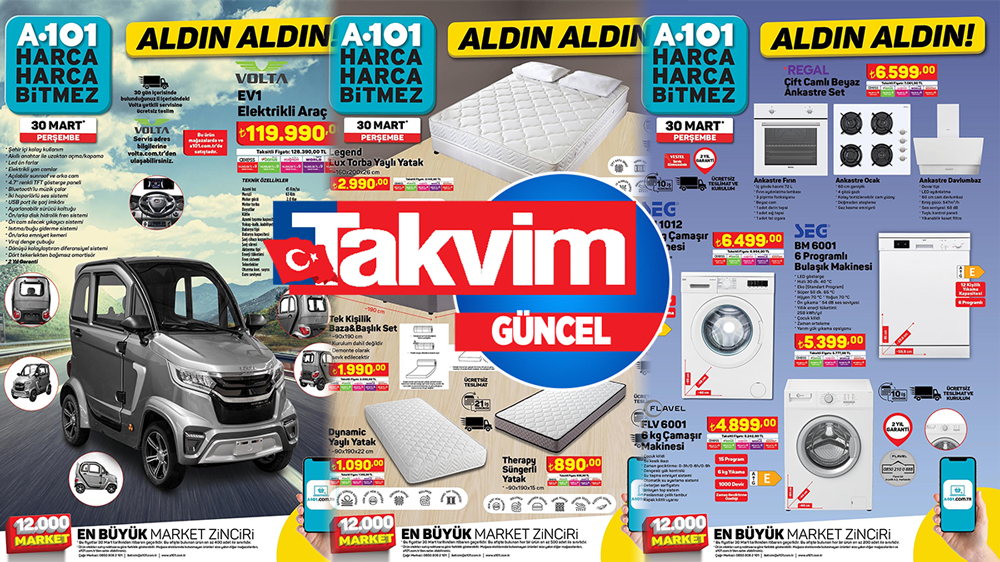 A101'in yeni aktüel ürünler kataloğu yayımlandı. Katalogda özellikle elektrikli araç dikkat çekti. Hem taksit, hem 30 gün içinde ücretsiz teslim imkanı elektrikli arabaya ilgiyi arttırdı. Sadece bu haftaya özel 119.990 TL'ye satışa girdi. Motor gücü, menzili, azami hızı gibi tüm detay özelliklerine de katalogda yer verildi. Üstelik 2 yıl garantisi de cabası. İşte A101 30 Mart 2023 güncel katalog...