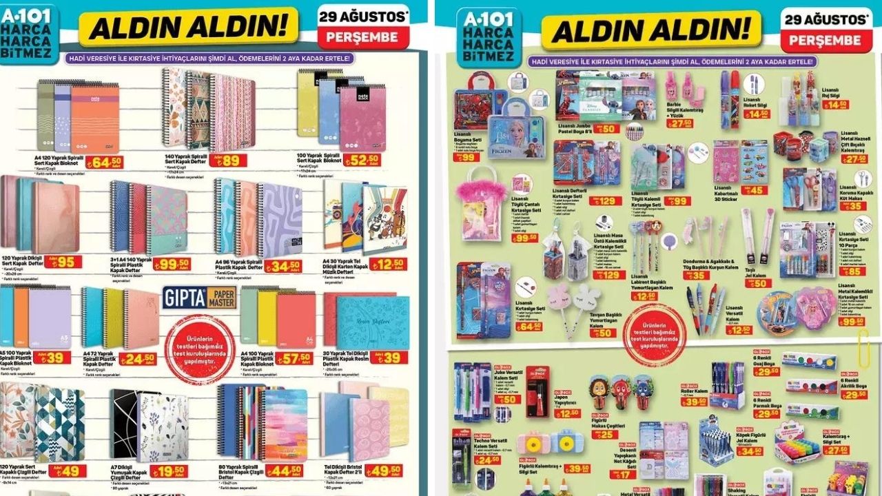 Perşembe günleri merakla beklenen A101 aktüel ürünler kataloğu, bu hafta da uygun fiyatlı ürünleriyle dikkatleri üzerine çekti. Öğrenciler ve veliler için yeni eğitim-öğretim yılı hazırlıklarının olmazsa olmazı olan kırtasiye ürünleri, A101'in bu haftaki kataloğunda geniş yer kaplamış oldu. Uygun fiyatlı defterlerden, renkli kalem setlerine, beslenme çantalarından, suluklara kadar aradığınız her şey raflarda yerini aldı.