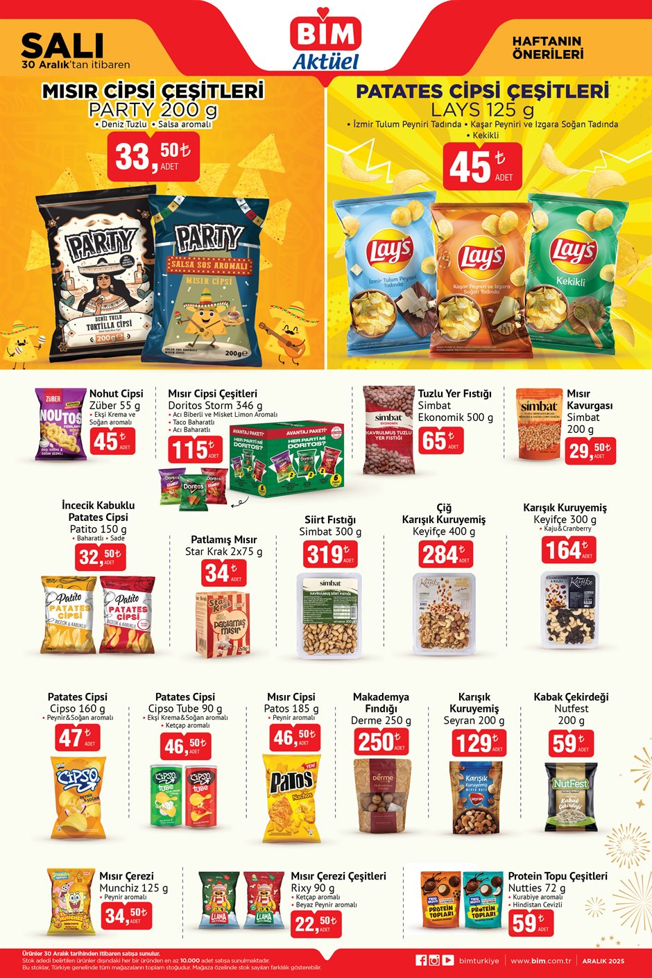 Yılın son Salı günü ağırlıklı olarak şarküteri, atıştırmalık ve kozmetik ürünleri ön plana çıkıyor.