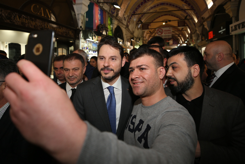 Hazine ve Maliye Bakanı Berat Albayrak, Kapalıçarşı'da esnafı ziyaret etti.