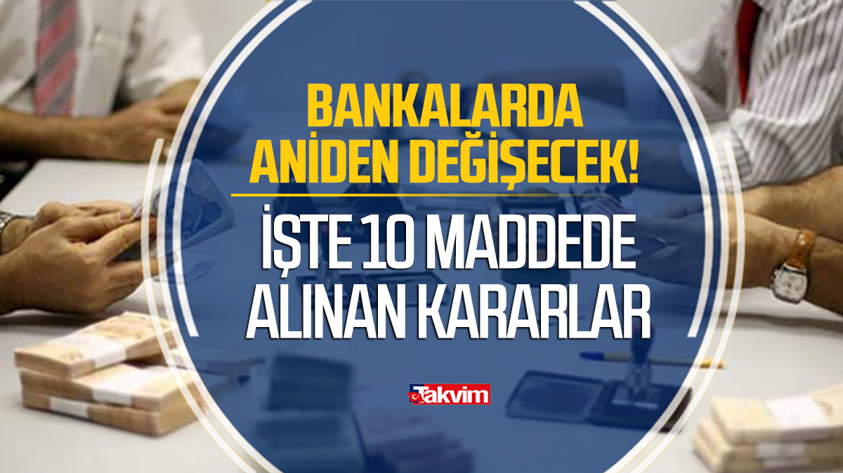 Bankalarda aniden değişiyor! Tüm işlemler artık tek tıkla yapılabilecek! Vatandaşlar için önemli kolaylıklar sağlayan kararlar devreye alınıyor. Birçok kalemde bankacılık sektörüne önemli düzenlemeler getirildi. Böylece bankacılık sektöründe hem vatandaş hem de sektör için bir dizi kolaylık getiren yeni dönem başladı. Düzenlemeler vakit ve para kaybının önüne geçiyor. Müşterinin şubeye gitmeye mahkum edildiği dönem bitiyor. 10 maddelik düzenlemeye gidildi. İşte madde madde son alınan kararlar...