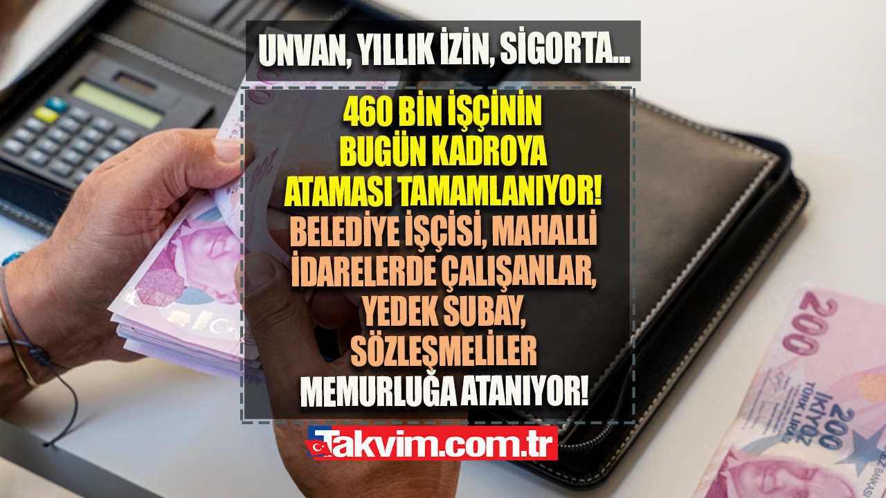 460 bin sözleşmeli için kritik gün geldi, çattı. Kadroya geçişte atamalar 28 Nisan yani bugün itibariyle sonuçlanmış olacak. Belediyelerde kadroya geçecek olanlar; sözleşmeli olarak görev yaptığı unvanına karşılık gösterilen memur kadrolarına atanmış olacak. Kadroya geçecek sözleşmeli personel için birden fazla detay bulunuyor. Peki, kimler kadroya geçecek? Hakları neler olacak? İşte tüm merak edilenler haberimizde!
