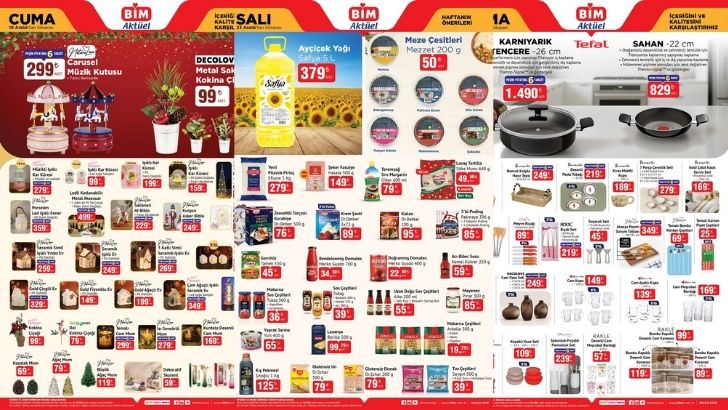 BİM marketleri, yılbaşı hazırlıklarının başladığı bu dönemde 16 Aralık Salı ve 19 Aralık Cuma günleri için iki ayrı kampanya sunuyor. Salı günü mutfak ve temizlik ihtiyaçlarına odaklanılırken, Cuma günü teknoloji, ev dekorasyonu ve yılbaşı hediyelikleri ön plana çıkıyor.