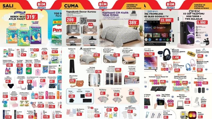BİM'in 2 - 5 Eylül 2025 aktüel ürünler kataloğu teknoloji, ev tekstili, mutfak ve gıda fırsatlarını bir arada sunuyor. Philips markalı süpürge ve buhar kazanlı ütüden, Polosmart WAG maşa ve LED ışıklı oje kurutucuya kadar birçok ürün cazip fiyatlarla satışa çıkıyor. Ayrıca çocuklara özel oyuncaklar, kırtasiye setleri ve okul malzemeleri de yeni döneme hazırlık için raflarda yerini alacak.