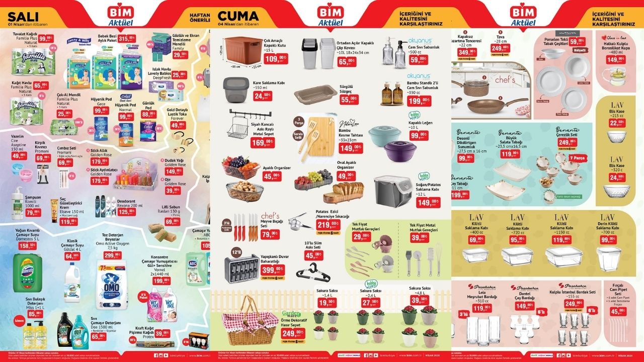 Nisan ayının ilk haftasında BİM yine dopdolu bir aktüel ürün listesiyle geliyor. 1-4 Nisan tarihleri arasında geçerli olacak indirimli ürünler kataloğu yayınlandı. Omix X6 cep telefonu, pet mama kabı, dikey buharlı ütü gibi ürünler dikkat çekerken, alışveriş tutkunları için kaçırılmayacak fırsatlar sunuluyor.