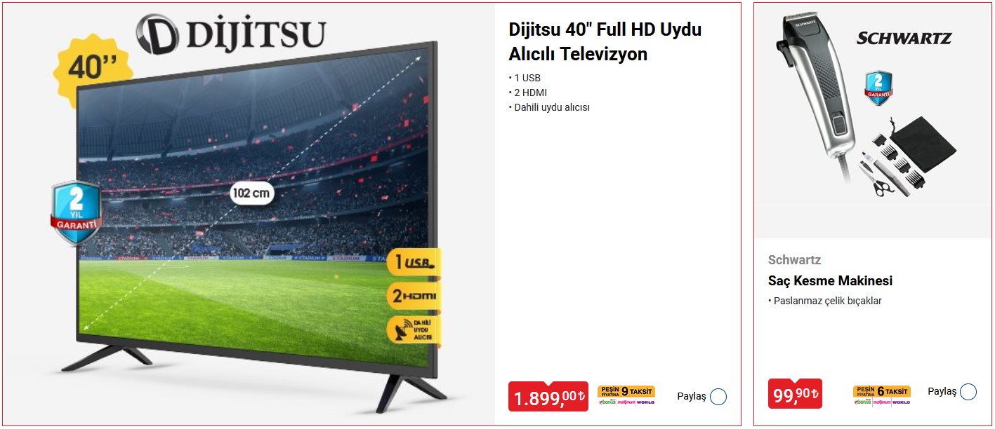 Dijitsu 40" Full HD Uydu Alıcılı Televizyon 1.899 TL