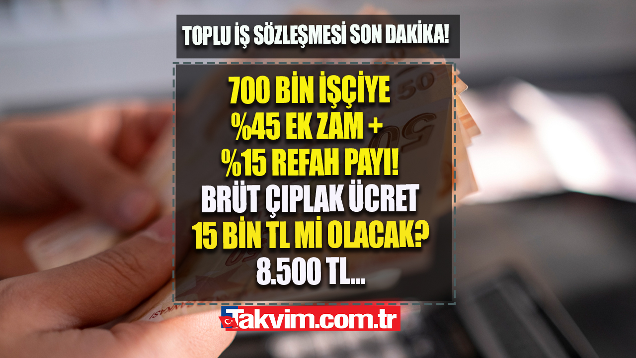 Sabah gazetesinde yer alan habere göre; TÜRK-İŞ ve HAK-İŞ, 700 binden fazla kamu işçisini ilgilendiren Toplu İş Sözleşmesi görüşmelerinde taban ücretlerin brüt 15 bin liraya yükseltilmesi, bütün ücretlere yüzde 15 refah payı ilave edilmesi ve birinci altı ay yüzde 45 zam yapılması talebinde bulundu.