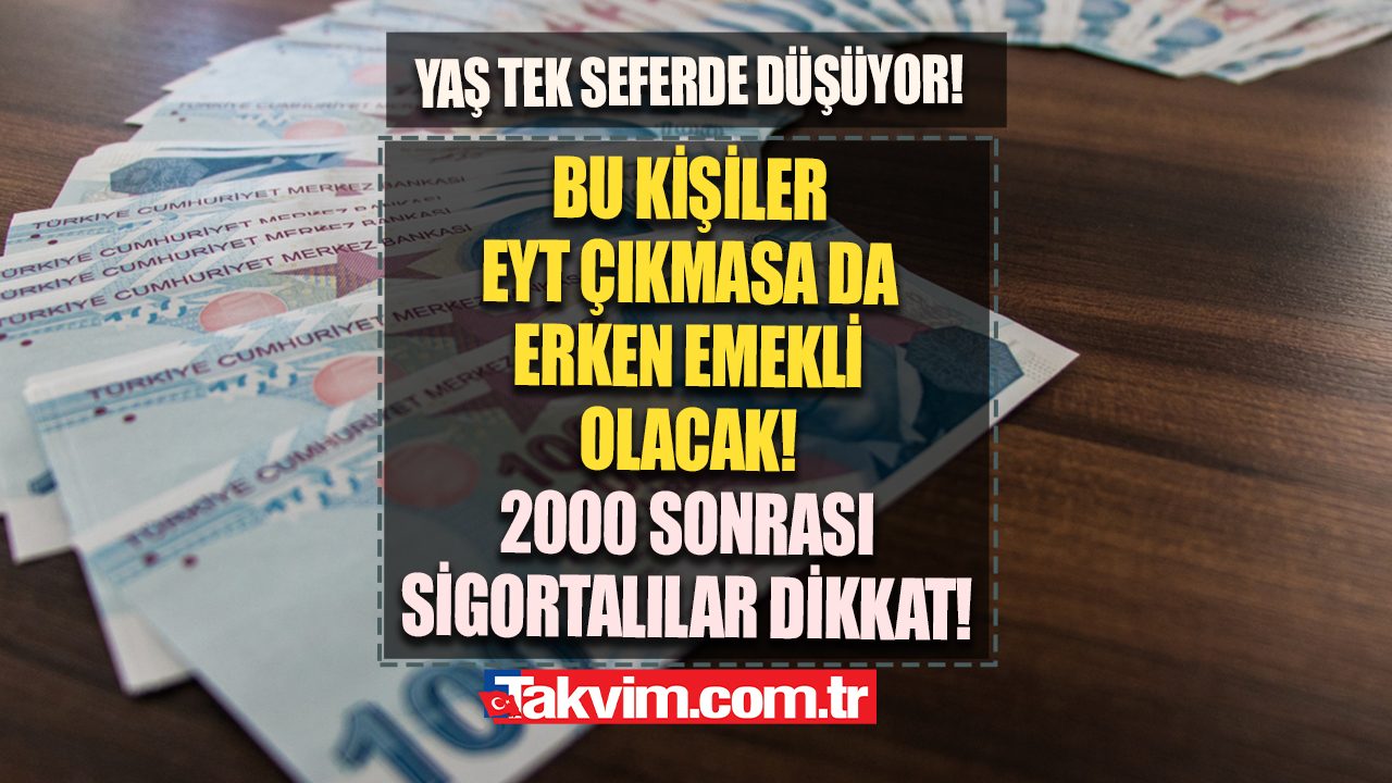 EYT yasasından yararlanamayacaklar için erken emeklilik yolları araştırılmaya başlandı. Uzun yıllar çalışan vatandaşlar prim ve yaş akdini doldurduktan sonra bağlı oldukları kurum üzerinden emekli oluyor. Türkiye'de SSK, Bağ-Kur ve Emekli Sandığı sistemleri üzerinden emekli olunabiliyor. Öte yandan normal koşulların dışında on senede yaş koşulu olmadan emeklilik hakkı da bulunuyor. Peki, kimler erken emekli olabilecek? EYT'siz erken emeklilik şartları neler? İşte detaylar haberimizde!