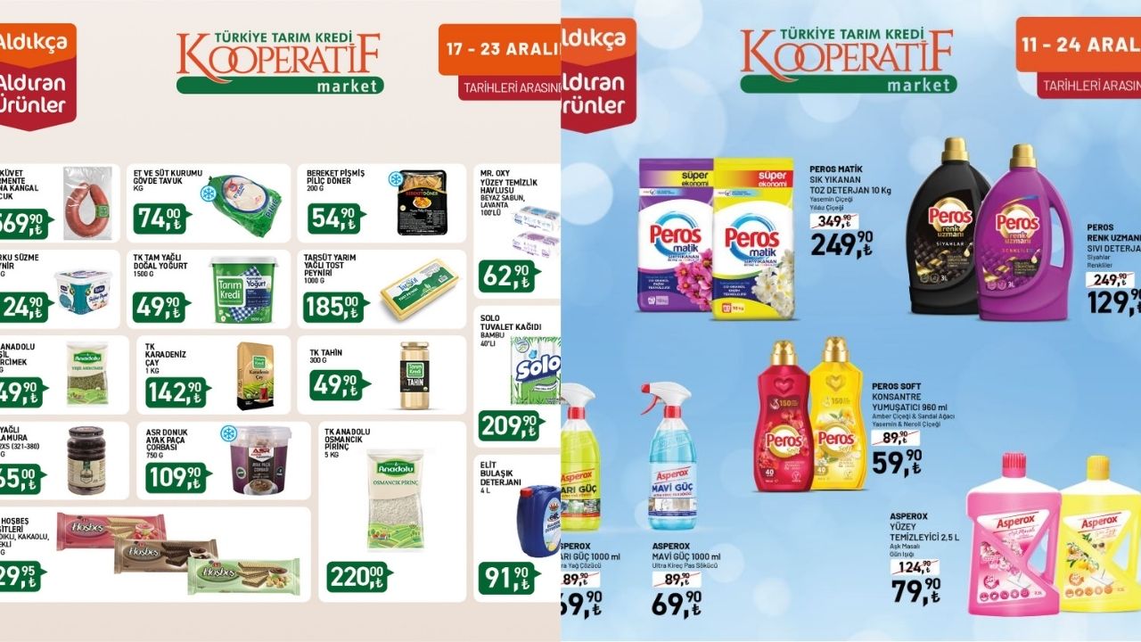 Tarım Kredi Kooperatif Marketleri'nde bu hafta binlerce ürün raflarda indirimli fiyatlarıyla yerini aldı. 17-23 Aralık aktüel kataloğunda temel gıdadan temizlik malzemelerine kadar pek çok ürün, bütçe dostu fiyatlarla müşterilere sunuluyor.