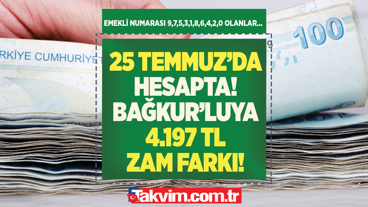 Emeklilerin zamlı maaşları Temmuz ayının ilk haftasında belli oldu. Emekli kart numarasının sonu 9-7-5-3-1-8-6-4-2-0 olanlar hakkında çok önemli bir duyuru geldi. Bağkur emekli maaş ödemelerinin yarından itibaren hesaplara yatmaya başlayacağı duyuruldu.Bu kapsamda emekli kart numarası sonu 9 olanların ilk olarak maaşlarını alabilecekleri aktarıldı. Arama motorları üzerinden kimin ne zaman emekli maaş alacağı araştırılırken emeklilerin ATM'lerden paralarını çekebilecekleri belirtildi. Pkei, yeni zamlı Bağkur maaşları ne kadar oldu? İşte detaylar...
