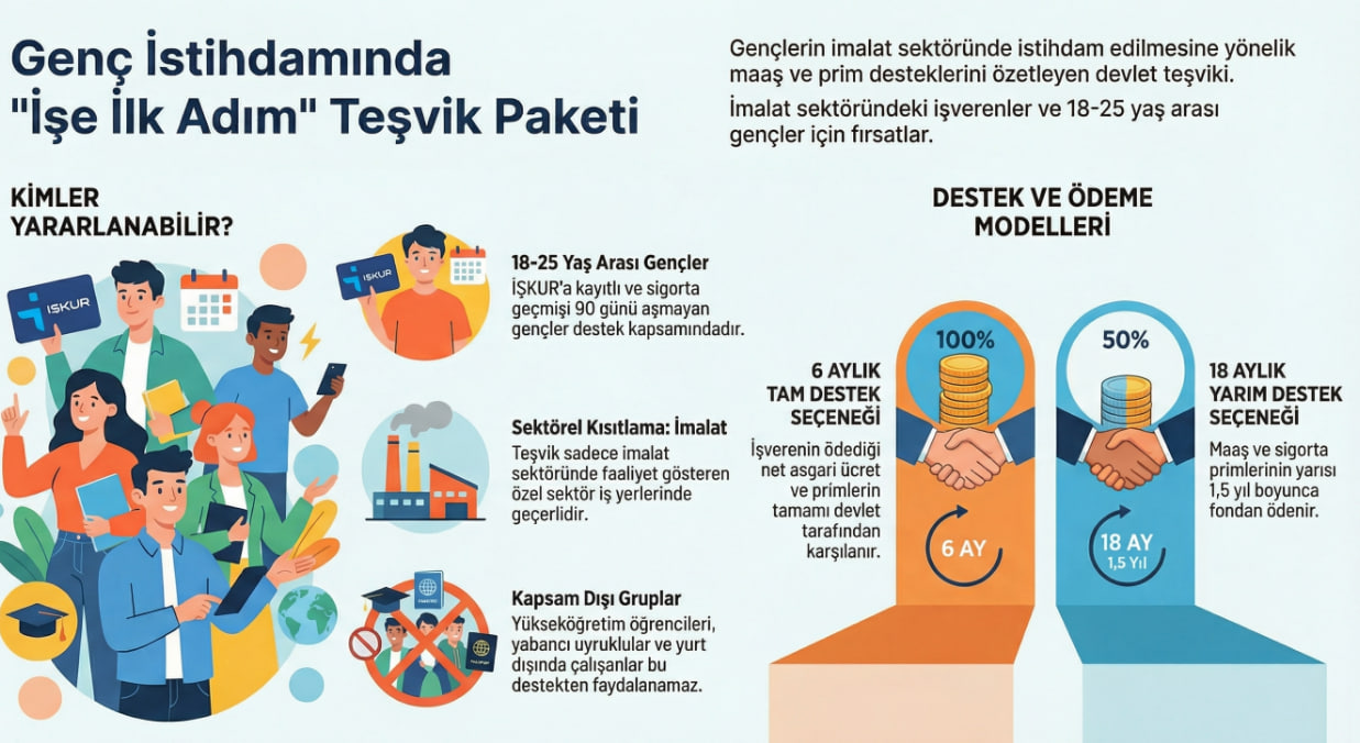 Söz konusu destek yalnızca imalat sektöründe faaliyet gösteren özel sektör iş yerleri için geçerli olacak. Bu kapsamda işverenlerin genç istihdamına yönelmesi hedefleniyor.