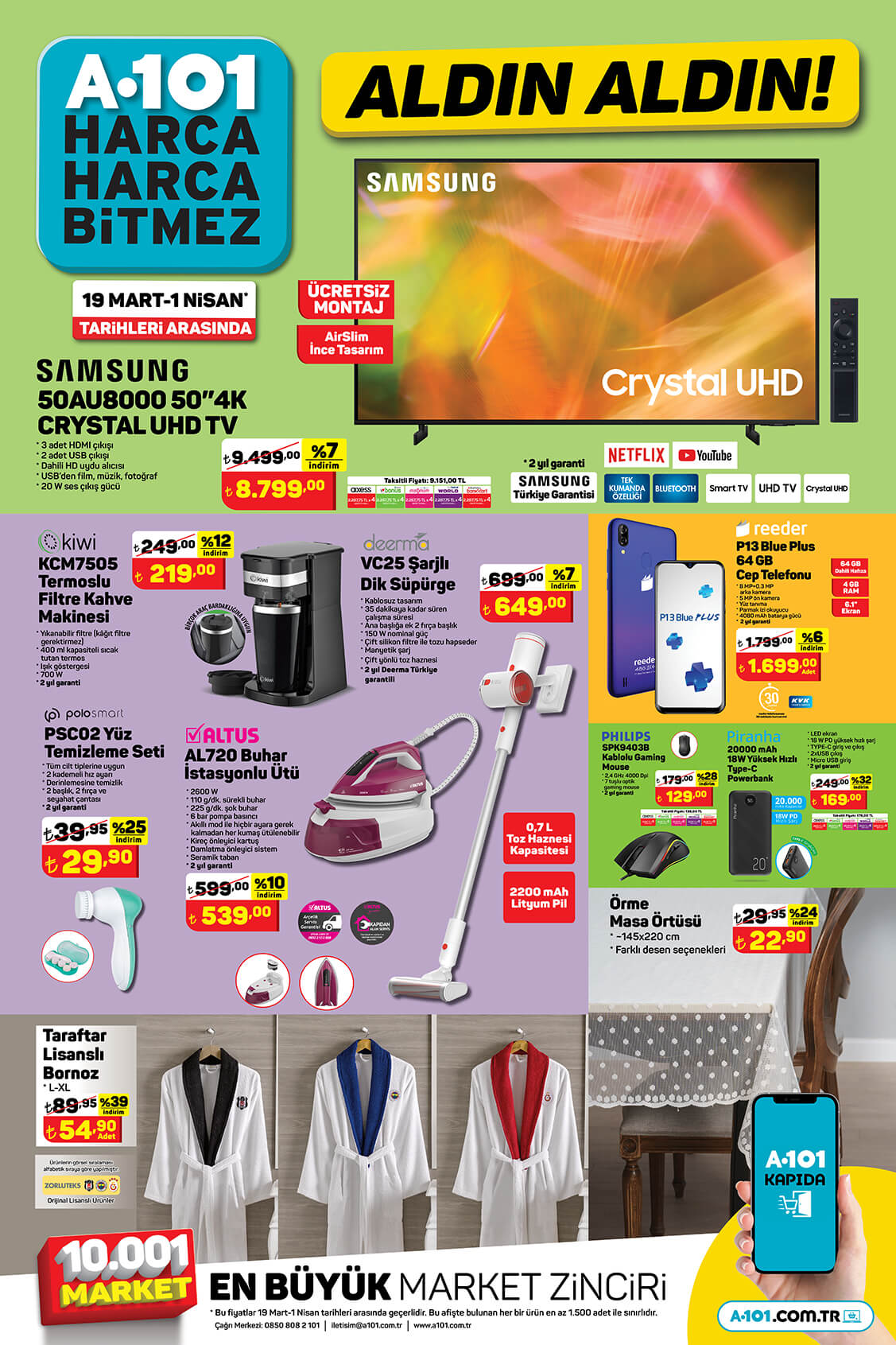 Beklenen A101 aktüel ürünler kataloğunun yenisi yayınlandı. Bu hafta A101 marketlerinde neler var? Hangi ürünler indirime girdi? soruları vatandaşlar tarafından yoğun olarak araştırılıyor. Yeni haftada A101 zincir marketlerinde gıdadan, züccaciyeye, teknolojik ürünlerden çeyiz alışverişi için gerekenlere tüm ihtiyaç ürünlerinde indirim yapıldı. A101'de haftanın yıldızları belli oldu. Öncü Salça biber acı 1650 g 36,95 TL'ye düştü. 30'lu yumurta 41,90 TL'den satılmaya başlandı. Papia Kağıt Havlu 6'lı 62,50'den 27,90'a indi. İşte güncel A101 indirimli ürünlerinin tamamı...