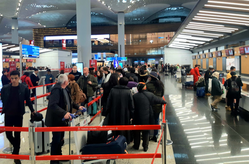 Yoğunluğun yaşandığı terminallerdeki yolcular görevliler tarafından işlem yapılan kontuvarlara yönlendirdi.