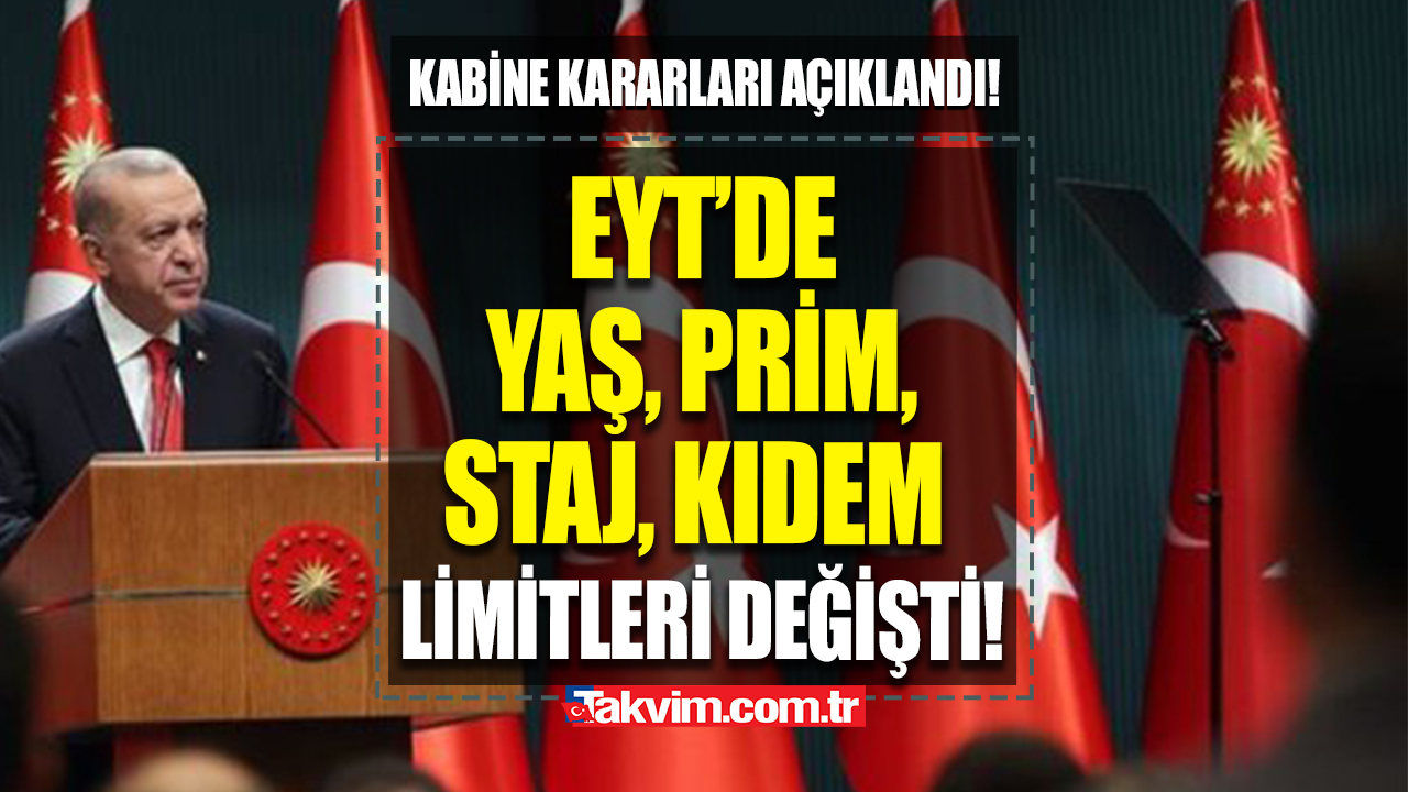 Kasım ayının son Kabine Toplantısında gündemde yer alan konular heyecanla bekleniyordu. Vatandaşlar konuyla ilgili araştırmalarını hızlandırdı. EYT'de yılın son hediyesi verildi. Başkan Erdoğan Kabne Toplantısı sonrası EYT'liye müjde üstüne müjde verdi. Sözleşmeliye kadro, EYT'de son durum ve daha birçok konuda yapılan açıklamalar milyonlarca kişi tarafından merak ediliyor. İşte Kabibne kararları sonrası EYT'de son durum ve tüm merak edilenler...